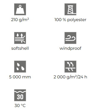 - Softshell: 100 % polyester
