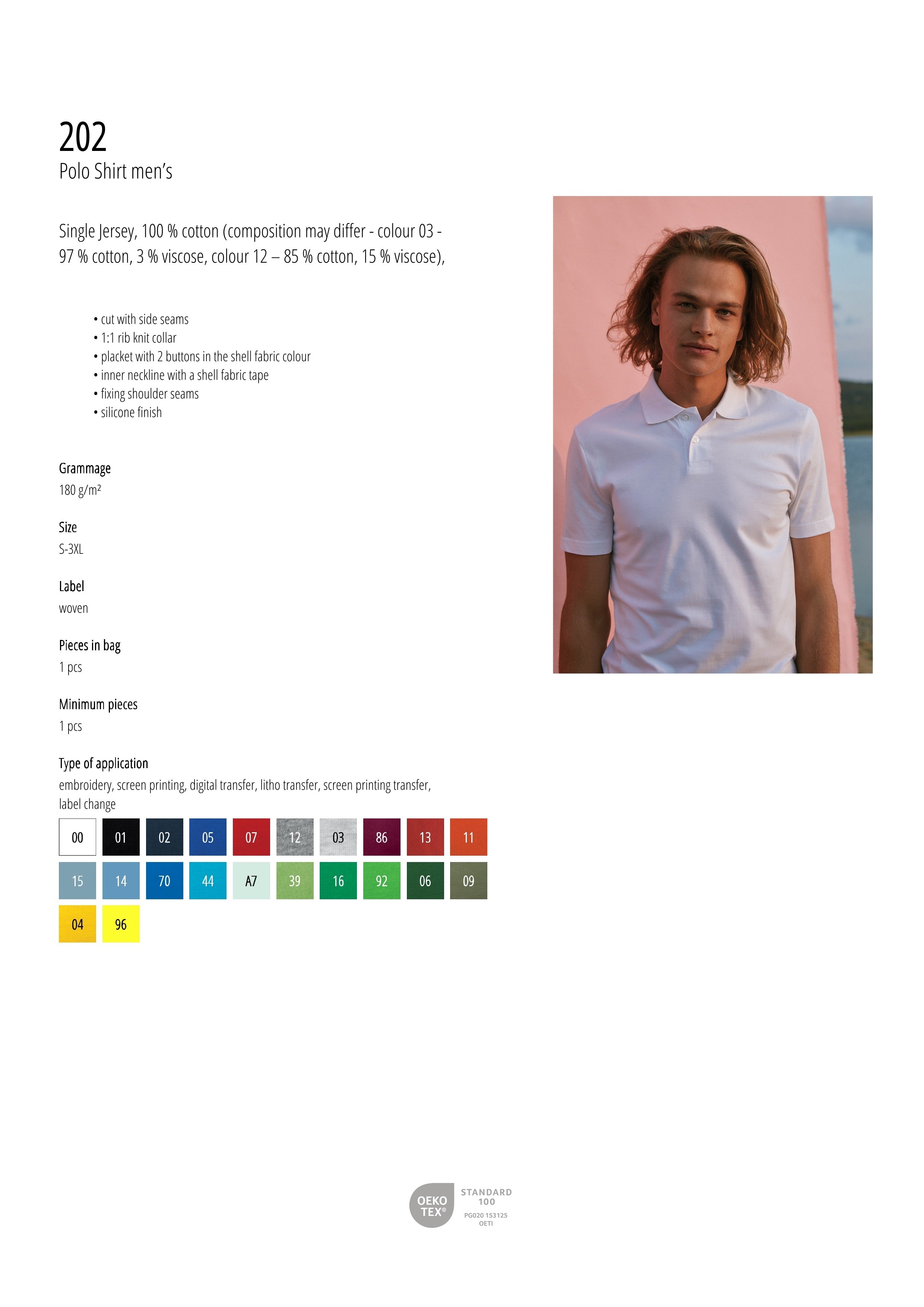 • 100 % cotton (composition may differ - colour 03 - 97 % cotton, 3 % viscose, colour 12 – 85 % cotton, 15 % viscose), silicone finish