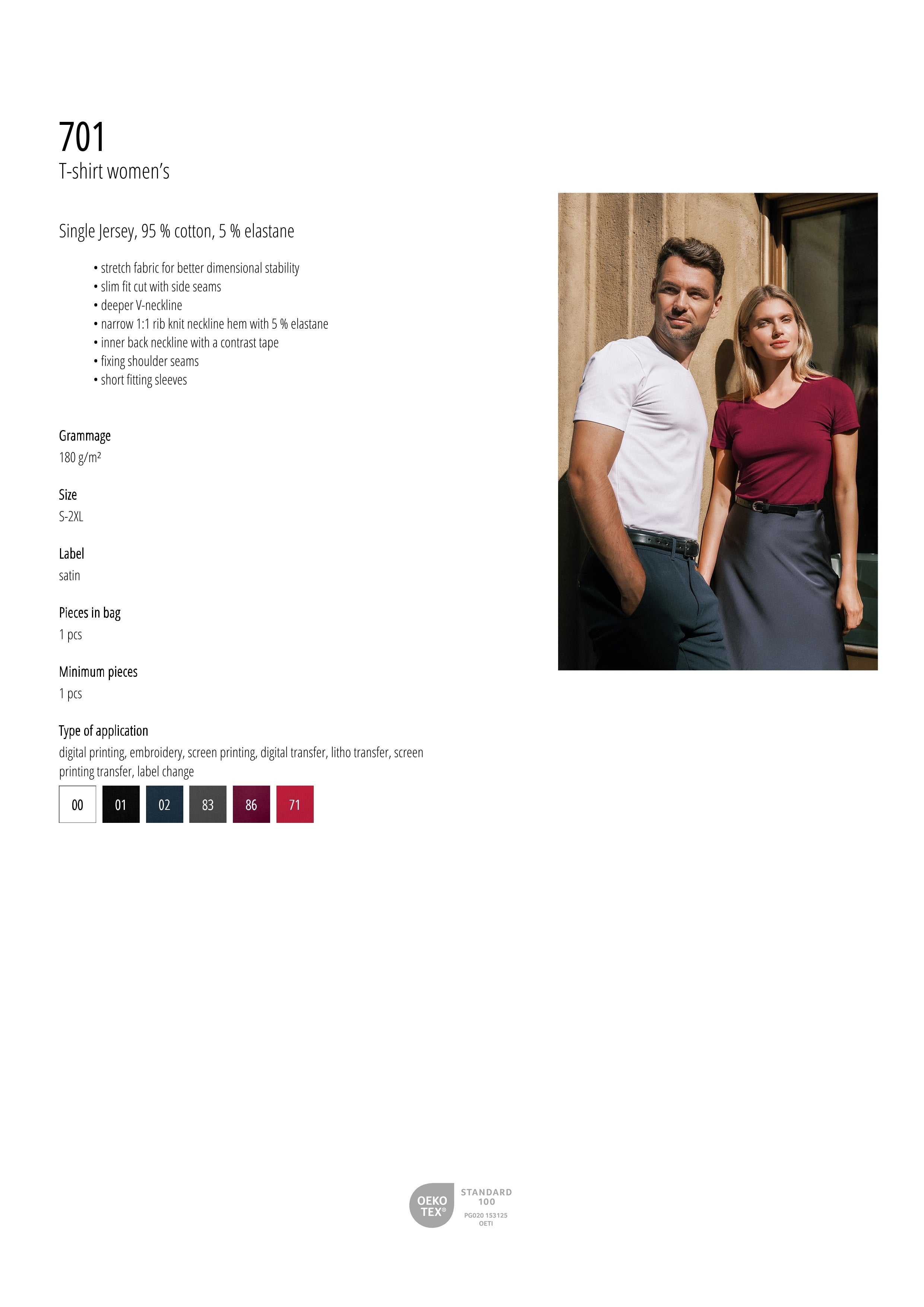 • Type of application: digital printing, embroidery, screen printing, digital transfer, litho transfer, screen printing transfer, label change